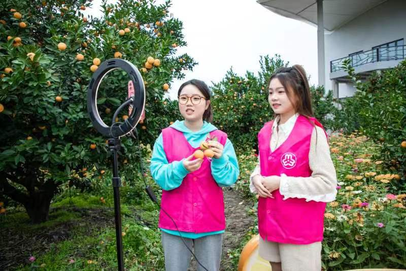 现在正是蜜桔成熟的时候,在硕果成片的贡橘园里,金灿灿的蜜桔挂满枝头,每一颗都圆润饱满,令人垂涎欲滴。南城街道妇联联合台科院开展线下直播带货,主播通过现场采摘、品尝等形式,与粉丝互动,粉丝可以边看边下单订购,通过直播平台将这些蜜桔销往全国,抢抓机遇在“云端经济”领域创业创新和就业增收,为助力乡村振兴果农增收贡献巾帼力量。