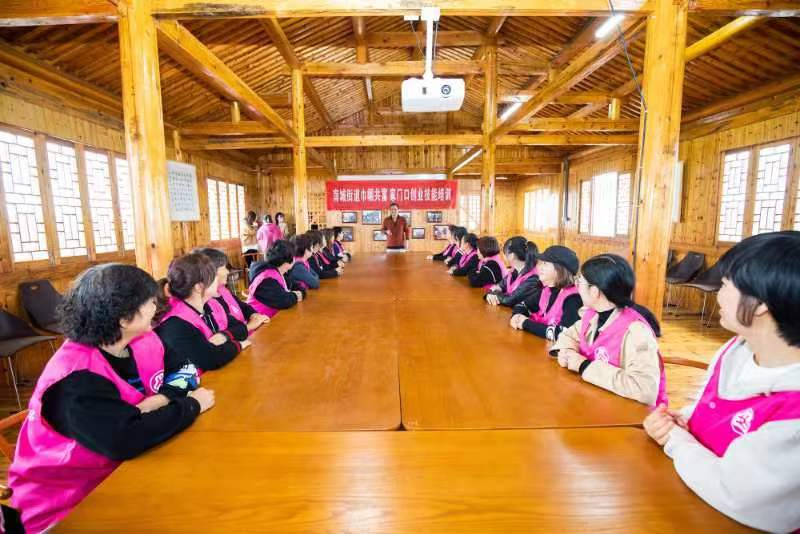 南城街道妇联通过“家门口创业”应用发布了美食制作等定向课程培训,也在一次次线上线下的召集中,组织起现在“妈妈的味道” 匠心传承的巾帼共富团,串起了“家门口”共富路。