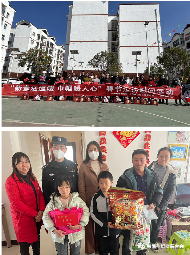 为深入学习贯彻落实党的二十大精神,充分发挥妇联桥梁纽带作用。1月12日-13日,贵州省黔南州妇联联合贵州省未成年犯管教所赴惠水县、长顺县、罗甸县开展“把爱带回家暖童心护成长”和“新春送温暖巾帼暖人心”春节慰问活动暨疫情防控工作调研,活动中为 “三关爱”人员、大病困境妇女、基层妇干、女科技工作者等送去新春的祝福及价值2.34万元慰问金和慰问物资,州妇儿工委办专职副主任柏汶君、贵州省未成年犯管教所、州县妇联相关负责同志参加活动和调研。