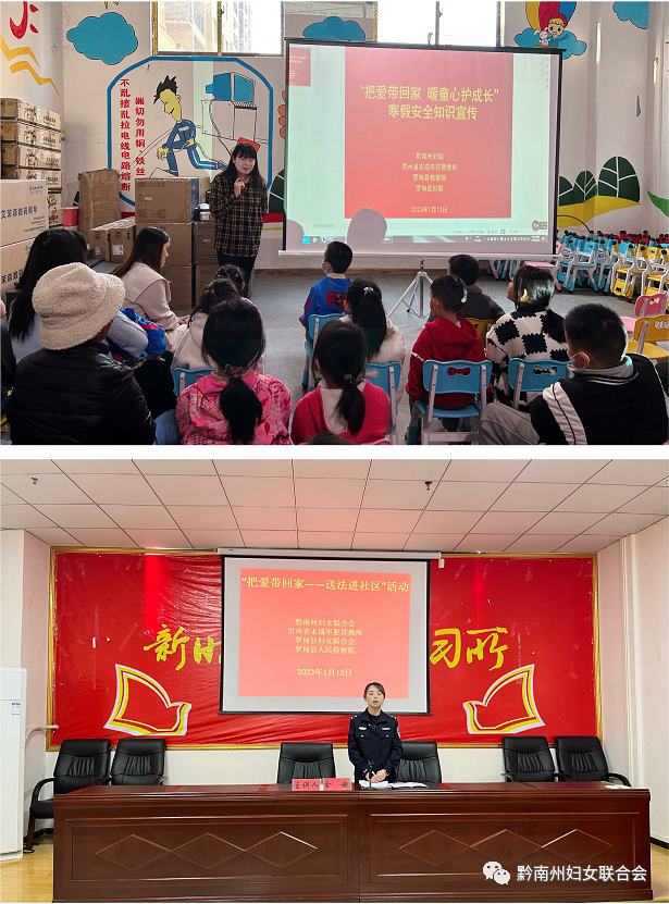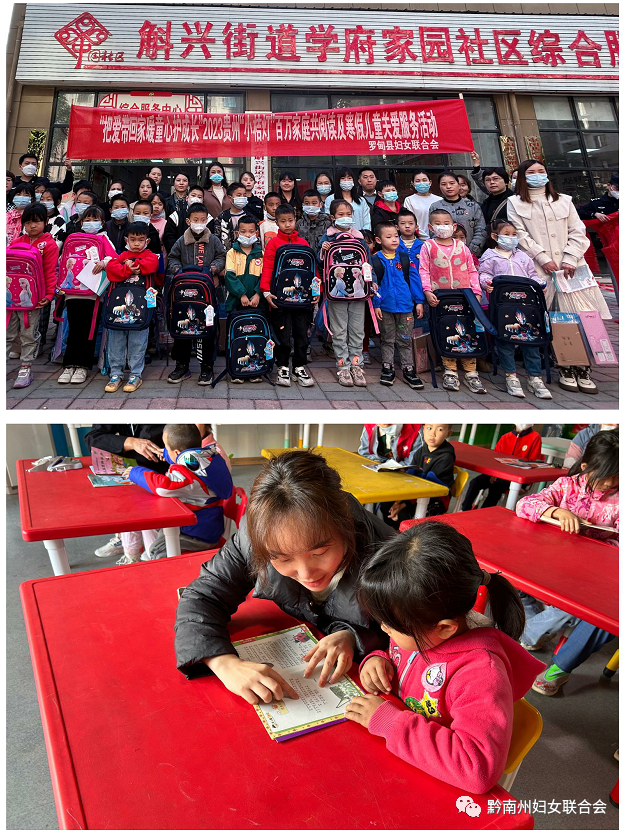在罗甸县思源社区,慰问组一行与小朋友们共同开展了“把爱带回家 暖童心护成长”2023贵州“小桔灯”百万家庭共阅读暨寒假儿童关爱服务活动,通过与孩子、家长们亲切互动、共同阅读、分享寒假安全知识、观看防性侵、反拐宣传视频,开展家庭教育宣讲等方式,引导家长孩子共阅读的同时提升儿童安全意识,活动中还为儿童送上了“幸福家”知识书包和文具等学习用品。
