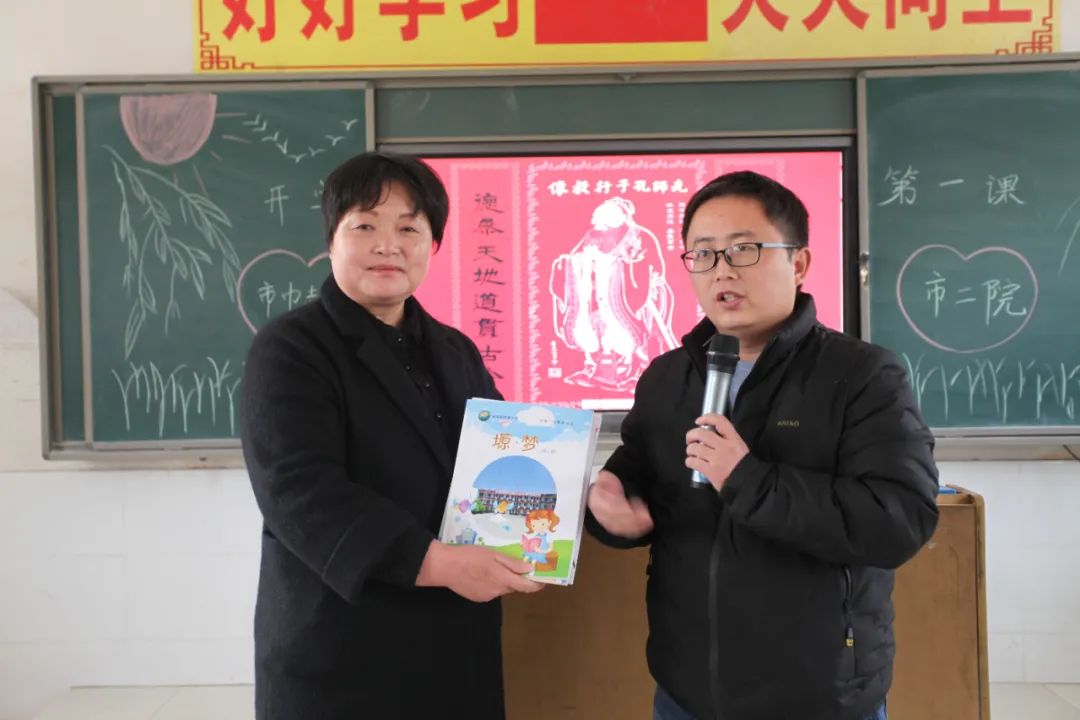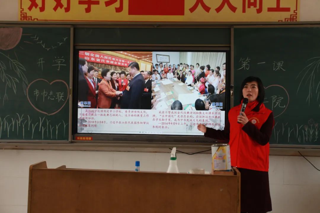 开学第一课“爱经典,读论语”—公益国学课堂 中华优秀传统文化是国家和民族的根与魂,国学经典更是传统文化的重要载体,2月6日下午,新学期伊始,陕西省渭南市妇联携手市巾帼志愿者联合会、市二院的志愿者们走进临渭区阳郭镇贺家小学开展以“爱经典,读论语”为主题的开学第一课公益国学课堂活动,营造浓郁的经典诵读氛围,让国学经典润泽学生心灵。 多彩课堂活动 “破冰游戏”—街舞表演 《做智慧师生 “典”亮幸福人生》 —国学知识宣讲 为学校赠送《学庸论语》书籍 共同诵读《论语》篇章 学习中国传统礼仪—拱手礼 学校回赠书籍 共唱《听我说谢谢你》 课堂活动上,赵飞宇老师为同学们带来一曲动感的“破冰游戏”——街舞表演,拉近与孩子们的距离,活跃了课堂气氛;李英莉老师通过介绍诵读国学经典的意义以及如何学习国学经典知识,让孩子们潜移默化地接受古文化的熏陶;现场共诵《论语》篇章,学习中华传统礼仪——拱手礼,共同感受传统文化的精髓与魅力;最后师生共唱《听我说谢谢你》,向现场的志愿者们表达感恩之情。 诵读国学经典,弘扬传统美德 通过此次公益国学课堂主题教育活动,让学生们在学习国学经典,了解传统礼仪的同时,更好地弘扬和传承中华民族精神和优秀传统文化,帮助学生树立正确的世界观、人生观、价值观,用国学经典照耀健康成长之路。 每一段成长都是奇妙的旅程,每一次开学都是快乐的新起点,在欢声笑语中我们开启了新的旅程,新学期、新挑战、新任务、新使命,梦想已经启航,一起出发吧!