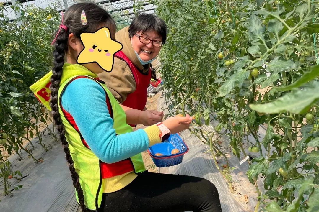 在番茄种植基地,孩子跟着邻家妈妈,提着小篮子游走于采摘棚的各个角落。通过采摘,加深了邻家妈妈与孩子相互交流,让儿童更加热爱生活,拥抱大自然。