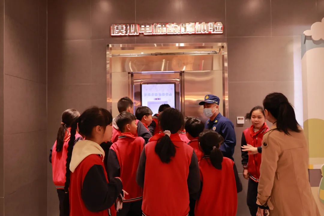 体验模拟电梯故障时,我惶恐不安,怕电梯突然下坠,有些紧张。但体验完后,心情很是愉悦,在电梯中,我学会了许多消防知识,以后,我若被困在电梯,可以用学到的消防知识自救。