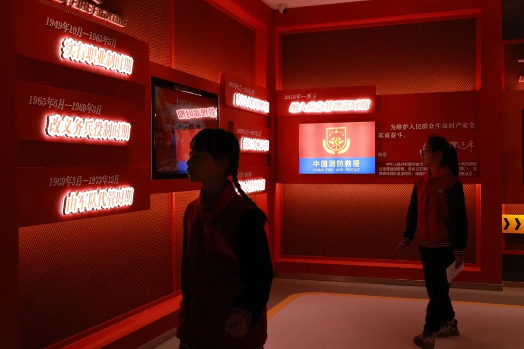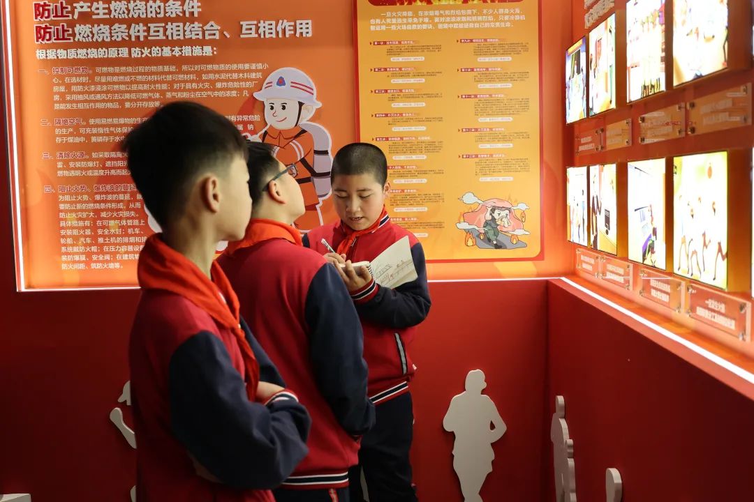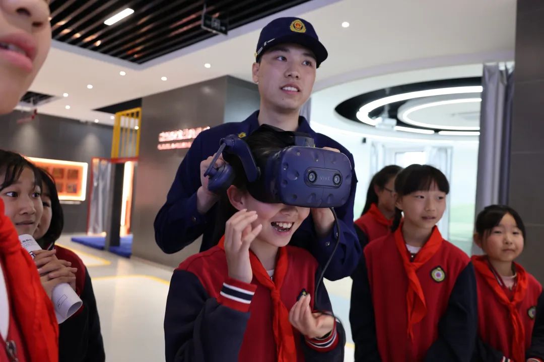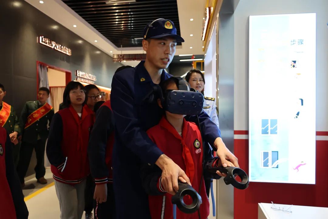 在消防员的带领下来到应急(安全)宣传教育体验馆“零距离”接触消防设备、学习消防知识、提升消防意识。体验馆分为8个展区,例如:观看我国消防工作发展历史和重大火灾警示案例、沉浸式体验VR高空逃生场景、模拟驾驶座椅系统互动等。