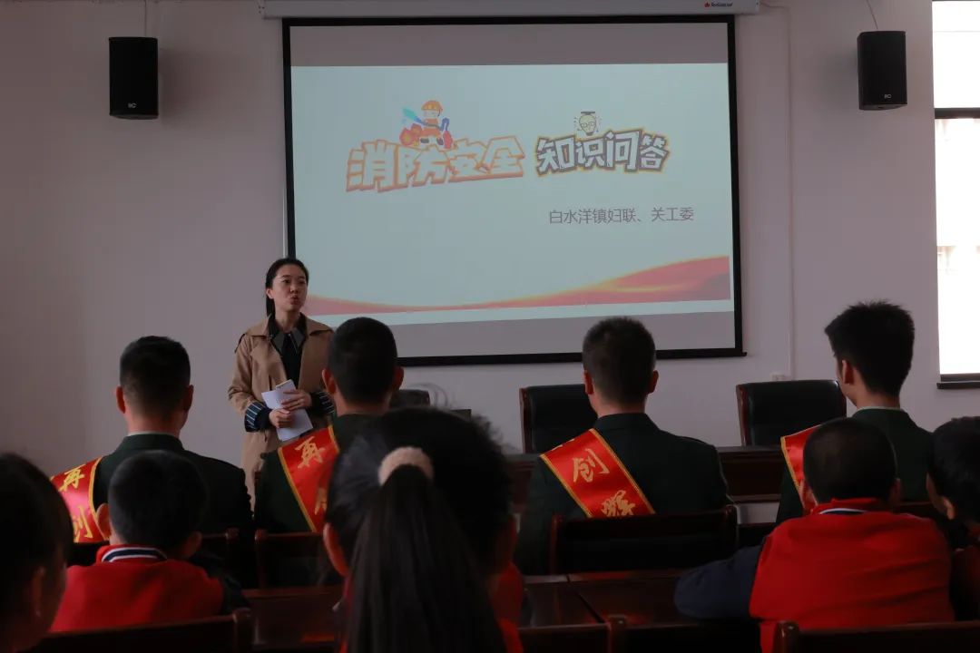 经过体验馆的参观,学生对消防知识了然于胸。镇妇联的同志为学生举行了一次消防安全知识问答比赛。学生参与热情很高,注意力高度集中,积极抢答,现场气氛既紧张又活跃。最后,镇妇联的同志表示希望在场同学能将消防安全知识传递给身边同学,呼吁全体同学重视消防安全。