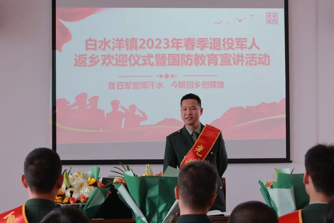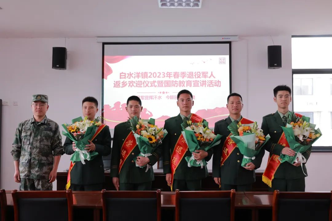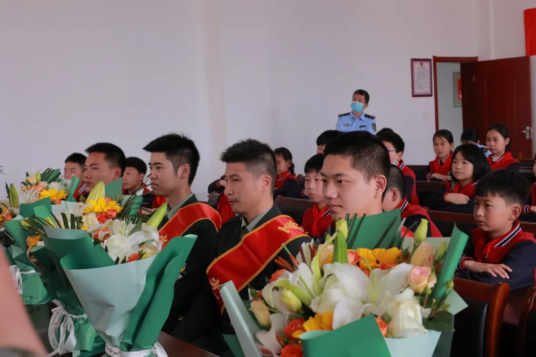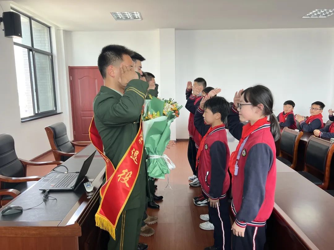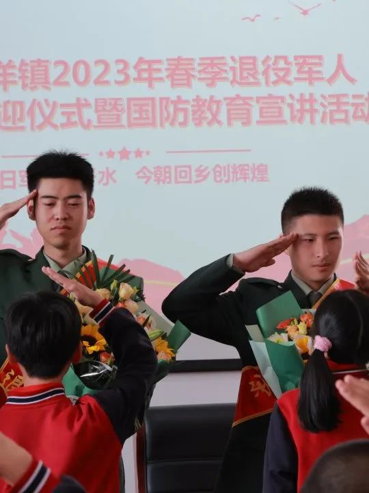 今年春季,有多位临海白水洋籍军人退役回乡。白水洋镇中心校5名优秀学生代表怀着对军人的崇敬之意献花。5位退役军人代表肩披绸带与学生互敬礼。相信在学生心中已经种下了热爱国家与军人的种子。