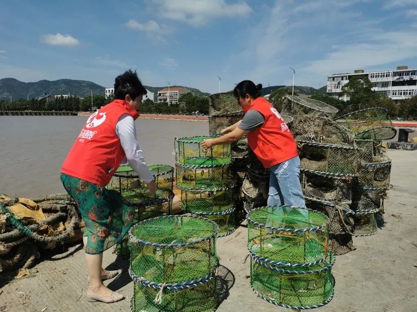 发动“东海渔嫂”自制“红、绿、蓝”三色渔网袋,科学区分有害垃圾、可回收垃圾、其他垃圾,并分发到渔船,有效解决分类垃圾桶占用空间大、搬运不便的问题。