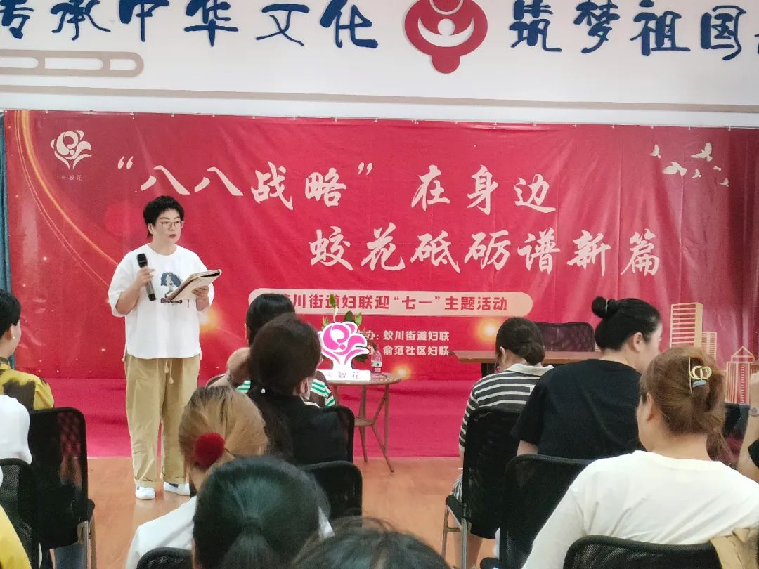 “七一”前夕,浙江省宁波市镇海区“蛟花”宣讲队开展了“‘八八战略’在身边 ‘蛟花’砥砺谱新篇”主题宣讲活动。宣讲员李静分享了一堂“践行‘八八战略’ 奋力‘两个先行’”主题党课,宣讲队成员们也围绕自身工作职责,从身边人、身边事出发畅谈了“八八战略”学习感悟。通过此次活动,“蛟花”宣讲队成员们带领基层妇联干部和妇女群众深入学习了“八八战略”的丰富内涵和重要意义,同时,也学习践行了用“身边事”诠释“大政策”,以“小故事”阐明“大道理”的宣讲方式,努力把党的创新理论传递给更多的妇女和家庭。 宁波市镇海区“蛟花”宣讲队成立于2019年6月,由蛟川街道妇联干部、村(社)妇联主席、辖区优秀妇女骨干等30余人组成。该宣讲队将队名“蛟花”引申而来的“教花”“浇花”“娇花”作为特色目标,四年来,开展各类宣讲320余场次,受众超3万人次。相关经验做法被《中国妇女报》头版和央广网、浙江日报、浙江新闻客户端、红船女儿等媒体宣传报道。 唱好“教花”曲,让宣讲“更接地气” “蛟花”宣讲队坚持用“实”的内容、“活”的方式、“鲜”的语言解读党的创新理论和大政方针,教育引导广大妇女和家庭感党恩、听党话、跟党走。 用“乡情”拉近距离 将党的创新理论与辖区实际情况紧密结合,从基层治理、乡村振兴、文明实践等入手,以群众身边人、身边事作为切入点,用小载体讲清大道理、小角度阐述大观点、小事例回答大问题。去年,在共同富裕专题宣讲中,她们紧盯妇女最关心的“柴米油盐酱醋茶”,通过讲述亲历、亲闻、亲为的鲜活故事,反映城乡变化和发展历程,深受广大妇女群众欢迎。 用“土味”引发共鸣 她们把宣讲阵地设在田间地头、村社院落、果园大棚等充满“泥土味”的地方,用群众“听得懂、听得进、喜欢听”的方言土话,以“拉家常”的方式话成就、看变化、谈感受,引发大家强烈共鸣。宣讲骨干孙莺经常搬起小板凳走到妇女群众身边,把“高大上”的理论化为“农家语言”,让党的理论更接地气、更易于被广大妇女群众接受。 用“花式”吸引群众 坚持寓教于乐,运用快板、说唱、小品、歌舞、经典诵读、三句半等群众喜闻乐见的文艺形式,把理论“唱出来”“演出来”“展出来”;通过穿插“知识闯关”“猜谜学史”“有奖接龙”“学习运动会”等游艺形式,让理论“活”起来、“动”起来、“鲜”起来,使广大妇女群众在欢声笑语中记住“大道理”、了解“大政策”、掌握“新形势”。 在组织集中式大宣讲的基础上,“蛟花”宣讲队通过走街串巷、上门入户开展“点对点”微宣讲,实现党的创新理论“精准浇灌”,打通了理论宣讲“最后一公里”。 化身“辅导员”送理论 把讲堂搬到街头巷尾、学校课堂、公园广场、社区楼栋,开展小型化、院落式、“一对一”宣讲,在面对面、心贴心的互动交流中把理论讲“实”、讲“透”。利用村社会头会尾、电影下乡、文艺演出、文化展览、节庆活动等时机,采取捆绑式、插播式、互动式等宣讲,让党的创新理论被更多人所熟知。 化身“信息员”送政策 除了讲“大道理”、大政策,该宣讲队重点聚焦涉及群众切身利益的教育、医疗、养老等问题,聚焦保障人民美好生活需要的法律道德、乡风民俗、家风家训等内容,采取“零距离”的方式解读相关政策,让群众真正从宣讲中受益。宣讲员寇桂兰是心理健康专家,她采取“线上+线下”的形式,为群众普及健康知识20余场次,被群众称为“家庭贴心人”。 该宣讲队在走街串巷中,一边把党的好政策、好声音送到群众的心坎上,一边躬耕实干,脚踏实地、真真切切地聚焦群众的“急难愁盼”问题,积极调解百姓之间、邻里之间、家庭之间的各类纠纷。四年来,她们累计为群众解决矛盾纠纷、医保、养老、助学等各类实际问题和困难600多件,提升了群众的“获得感”。 唱好“娇花”曲,让宣讲“常讲常新” 做好理论宣讲工作,建强人才队伍是关键。该宣讲队在“教花”“浇花”的同时,注重从提高宣讲员能力素质入手,引导大家人人争当“娇花”、个个成为“名嘴”。 增强“能讲”内力 理论宣讲要上接“天线”、下接“地气”,宣讲员要先行一步。宣讲队通过积极开展理论知识、形势政策、宣讲技巧等培训,强化业务素养,提升宣讲能力。在今年年初的《习近平走进百姓家》学习中,她们采取专题辅导学、灵活联动学、研讨交流学、现场沉浸学、实践体验学等“五学”模式,增强了学习实效,补齐了短板弱项。 坚持“大道理”用“土专家”来讲,从道德模范、教师医生、致富能手、创业青年、五老人员、工匠艺人等人员中培养选拔一批素质过硬、善于讲演的“草根宣讲员”,并吸纳到宣讲队,通过建立相应的培训、管理、激励机制,发挥他们联系群众、植根群众、影响群众的作用,使宣讲变得可亲可信、充满“烟火气”。 善借“专家”外力 紧跟党的创新理论步伐,第一时间邀请省宣讲名师、周边高校专家为宣讲队作理论辅导;借助区委党校优质资源,邀请他们“定向辅导”“把脉会诊”,提升了宣讲员的实战能力。在党的二十大精神宣讲中,该宣讲队联合全国基层理论宣讲先进集体“理享+”百姓宣讲团,开发精品微宣讲20课,让新时代党的声音传播得更响亮、更广泛、更深入。