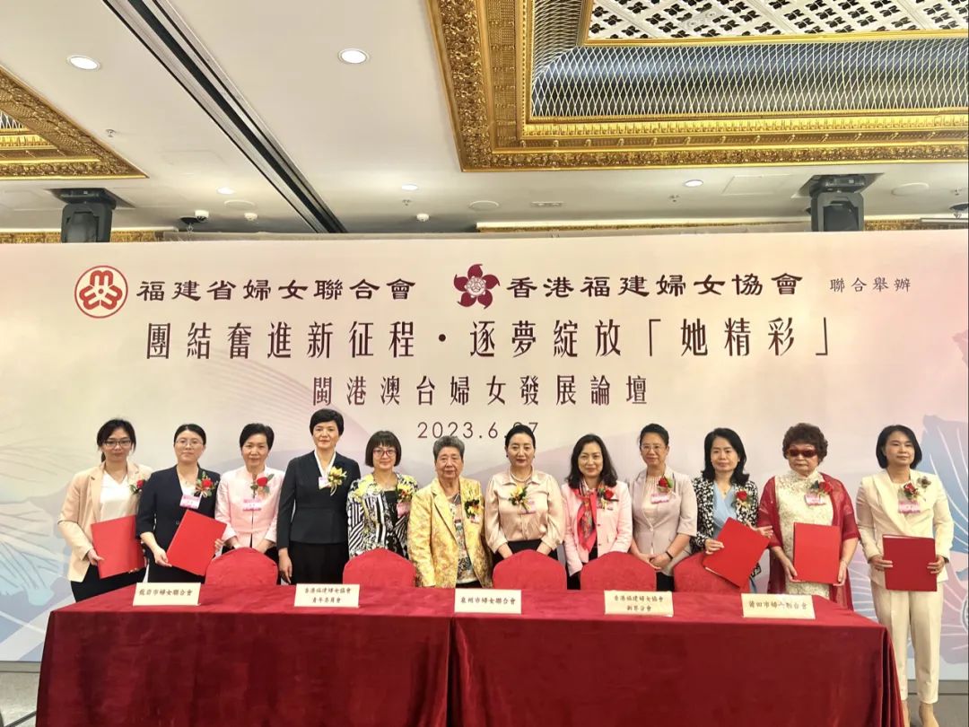 闽港澳台妇女汇聚一堂共叙姐妹亲情,共话交流发展。其中,泉州市妇联、晋江市妇联以及部分泉州女企业家 作为嘉宾出席本次活动泉州市妇联与香港基层妇女组织结对签约。 6月27日下午,由福建省妇联、香港福建妇女协会联合主办的“团结奋进新征程 逐梦绽放‘她精彩’闽港澳台妇女发展论坛”在香港举行,来自闽港澳台200多位妇女代表参加活动。 出席活动的嘉宾有福建省妇女联合会副主席卓晓銮、云南省妇联主席农布央宗、中联办协调部处长陈铁英、香港立法会议员、港区妇联代表联谊会副会长简慧敏,全国妇联特邀代表、港区妇联代表联谊会副会长张心瑜,全国政协委员、港区妇联代表联谊会副会长张佐姣,贵州省政协委员、九龙妇女联会主席苏丽珍,民盟鹤壁市委副主委兼秘书长、鹤壁市妇联执委冯雁阁,福建省侨联党组成员、秘书长朱根娣,福建省妇联发展联络部部长孙佳、福建省女企业家协会党支部书记孟凡颖、泉州市妇联主席骆春玲、莆田市妇联主席李晶、龙岩市妇联主席林艳、晋江市妇联主席许清心等。 全国妇联执委、香港福建妇女协会创会主席陈聪聪,香港福建妇女协会主席涂雅雅,北京市政协常委、香港福建妇女协会执行副主席李然,香港福建妇女协会荣誉顾问李木理、副主席兼秘书长施绵绵、副主席龚一星等出席本次论坛。 参加论坛团体有:福建省妇女联合会、云南省妇女联合会、福建省女企业家联谊会、港区妇联代表联谊会、香港福建妇女协会、澳门福建妇女联谊总会、中华港澳闽妇女协进会等。 论坛开幕式上,福建省妇联党组成员、副主席卓晓銮致辞。她表示,党的二十大擘画了以中国式现代化全面推进中华民族伟大复兴的宏伟蓝图,为妇女事业发展指明了方向。本次论坛以“团结奋进新征程逐梦绽放‘她精彩’”为主题,反映了闽港澳台姐妹同胞们拥抱新时代、争当新女性、展现新作为的共同心愿,必将进一步密切闽港澳台妇女的交流交往,引领海峡两岸及港澳广大妇女争做时代的书写人、追梦的奋斗者。福建省妇联愿与港澳台妇女社团一道,携手同心、并肩前行,凝聚巾帼之力,汇聚巾帼之智,团结奋进、创新超越,在以中国式现代化推进中华民族伟大复兴的征程上书写巾帼新篇章。 香港福建妇女协会主席凃雅雅致辞时表示,香港福建妇女协会创会九年来,广大闽籍姐妹乡亲不忘初心,砥砺前行,秉承创会宗旨,广泛团结香港各界妇女,参与社会事务。香港福建妇女协会将进一步推进闽港妇女交流合作,发挥桥梁纽带作用,讲好福建故事,团结凝聚香港各界闽籍妇女,积极支持家乡建设,为家乡的美好前景、中华民族伟大复兴贡献妇女“半边天”的作用。 现场举行了闽港基层妇女组织交流合作签约仪式,泉州市妇联、莆田市妇联、龙岩市妇联与香港福建妇女协会青年委员会、新界分会结对签约,积极推动两地妇女特别是青年女性之间交流联谊,搭建交流互访、经验分享、融合发展的平台。 随后,举行“团结奋进新征程 逐梦绽放‘她精彩’”主题论坛。全国妇联兼职副主席、中国人民解放军航天员大队特级航天员刘洋以视频方式讲述了为国出征太空的精彩故事。 全国巾帼建功标兵、省农科院高级农艺师苏海兰再现了“女科特派”让农业插上科技翅膀,让百姓腰包鼓起来的情景;港区全国政协委员曾瀞漪、澳门福建妇女联谊总会会长谢路生、台湾中华港澳闽妇女协进会理事长蔡齐鸣、台湾中国生产党主席卢月香则表达了带领姐妹们融入祖国高质量发展,发挥妇女在社会生活和家庭生活中独特作用,传承中华优秀传统文化,共创中华民族绵长福祉的共同心声。