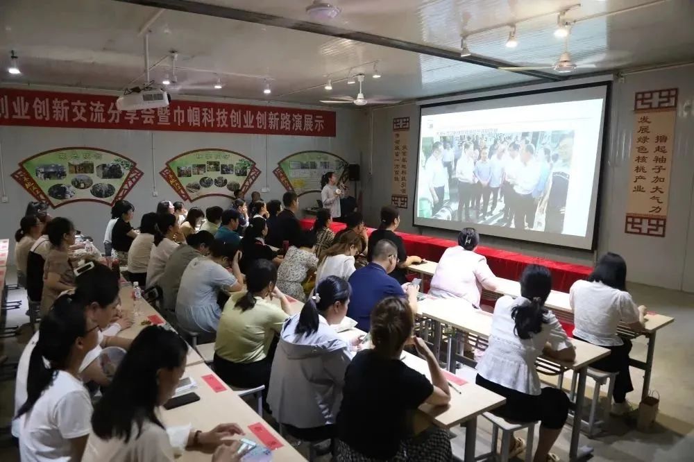 为全面贯彻党的二十大精神,赋能科技创新巾帼行动,进一步激发女性创业创新活力,深入推动“巾帼双创行动”和“乡村振兴巾帼行动”,促进更多城乡妇女创新、创业、就业,7月12日,在河南省济源示范区承留镇玉阳山金舜核桃基地举办了2023年济源示范区“愚公巧媳妇”创业创新交流分享会暨巾帼科技创业创新路演展示活动。各镇办妇联主席、专职副主席以及省市巧媳妇基地负责人进行参加,共计90余人,大家同聚一起共谋发展、促增收。