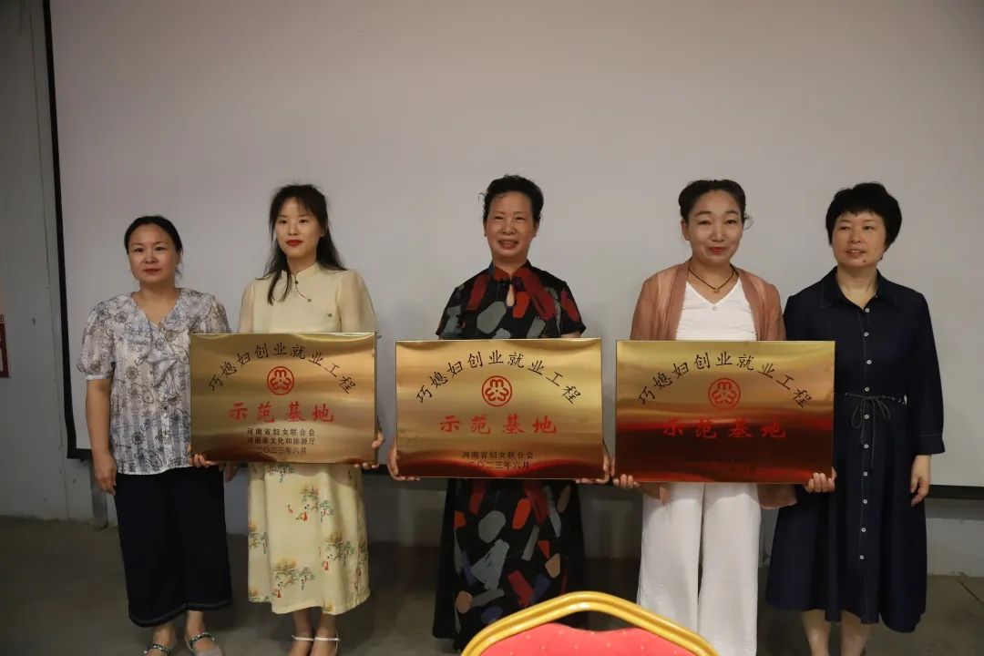 会上对获得3家“省级巧媳妇基地”承留金舜核桃园区、沁园白银城工业园区、下冶艳丽家庭农场进行颁奖。活动中,有成长经验、成功经历的分享,还有创业创新路上的新探索、新思路,既生动精彩又遍地开花。艳丽家庭农场带动韩彦村将近300名妇女就业,帮助韩彦村销售了八成以上的红果;48岁二次创业的蔡秋月和家人一起打造玉阳山核桃公园,大力发展核桃产业和林下经济,走深加工、多元化模式;沁园工业园巧媳妇基地积极推动“巧媳妇”工程从传统手工业向高科技产品拓展,从低端产品到一线品牌延伸,做到技能培训与能力培训双提升。