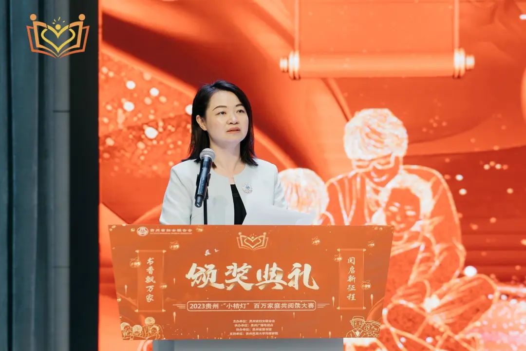 书页里,蕴藏着万千气象。聆听书语言,沐浴书香,细细咀嚼,小桔灯陪伴百万家庭,与时代奔流中的贵州共同成长。 “书香飘万家·阅启新征程”,近日,由贵州省妇女联合会主办、贵州广播电视台承办的2023年贵州“小桔灯”百万家庭共阅读大赛颁奖典礼在贵州省图书馆举行,本次活动得到中共贵州省委宣传部和省教育厅的大力支持。省妇联党组书记、主席杨晓曼,省委宣传部副部长、省精神文明办主任、省新闻出版局(省版权局)局长耿杰,省教育厅二级巡视员雷忠勇,省妇联副主席张婷,2023小桔灯大赛专家评审代表钟华出席,省妇联、省直机关单位相关部室同志,各市州妇联分管副主席,以及大赛参赛家庭代表300余人参加活动,点点桔光带动了百万家庭以书香为伴,共享阅读之乐。 贵州省妇联党组书记、主席 杨晓曼 贵州省委宣传部副部长耿 杰 贵州省教育厅二级巡视员 雷忠勇 张婷现场为大家介绍了2023小桔灯大赛情况,她表示:“大赛一年一次,阅读天天可有。以书相伴,是心灵上的洗礼;以书相知,是前进的方向,以书相悦,是精神上的慰藉。坚持阅读,我们才能更加清晰认识脚下的土地;重视家庭文明建设,才能让贵州千千万万个家庭成为国家发展、民族进步、社会和谐的重要基点,成为人们梦想启航的地方。” 贵州省妇联副主席 张婷 介绍2023小桔灯大赛情况 自2023年7月23日“小桔灯”从贵阳出发,用11天的时间,点亮了贵州9个市州的乡村、社区、景区、博物馆、学校等不同场景,各行各业的领衔人纷纷加入,为“小桔灯”助阵,为家庭助力。通过9个市州妇联、省直赛道自下而上的宣传动员、层层选拔,135个作品入围省级评选,最终在大赛评审会评选出了学龄前组、学龄组,少年组,成年组、常青组5个组别的十佳作品和优秀作品。 一起看看这11天的阅读之路吧! 阅读是一种神奇的力量,它可以带我们穿越时空,探索未知的世界,开拓我们的思维和想象力。而“小桔灯”让这种力量散布在贵州的神奇土地上,让越来越多的孩子爱上阅读,让更多的家长陪伴阅读,也为阅读爱好者提供一个读书交流与分享的平台。 贵州省委宣传部副部长耿杰为常青组获奖代表颁奖 贵州省妇联党组书记、主席杨晓曼为获奖单位颁奖 贵州省教育厅二级巡视员 雷忠勇 为少年组、成年组获奖代表颁奖 贵州省妇联副主席 张婷 为学龄前组、学龄组十佳奖获奖代表颁奖 2023小桔灯大赛专家评审代表 钟华 为学龄前组、学龄组优秀奖获奖代表颁奖 图书中的世界,是孩子们不设限的未来,因为有了阅读的陪伴,当我们回忆起童年时,在我们朦胧的记忆力,就有一片明明暗暗的灯火,闪烁着诱人的光芒。“小桔灯”这束光,也希望陪伴着万千家庭共同成长。通过阅读,我们可以把天空大海、大江大河、一切美好的东西都给孩子们。 吴非墨家庭:《一园青菜成了精》 林诗涵家庭:《我和小桔灯的故事》 范锦熹家庭:《习近平走进百姓家》 杨光武家庭:《春江花月夜》 李先国家庭:《书香伴桑榆》 宋曼妮家庭:《匆匆》 贵州民族大学传媒学院:《我骄傲,我是中国人》 读书,成为我们攀登高峰、摆脱束缚的阶梯,让我们看见了崭新的世界与人生。我们在读书中相会,感受文字的厚重与沧桑;我们在读书中相识,交谈浩瀚的知识与精神的世界。“小桔灯”照亮心灵,传递温暖,发现感动。让书香飘满家庭,滋养更多心灵。希望这盏灯能够汇聚更多能量,照亮到更远的地方。百万家庭共阅读,“小桔灯”,与时代奔流中的贵州共同成长。 我们生逢其时 相约在卷轴里 感受书卷风华 活动名称 2023年贵州“小桔灯”百万家庭共阅读大赛颁奖典礼 主办单位 贵州省妇女联合会 承办单位 贵州广播电视台 协办单位 贵州省图书馆 支持单位 贵州民族大学传媒学院
