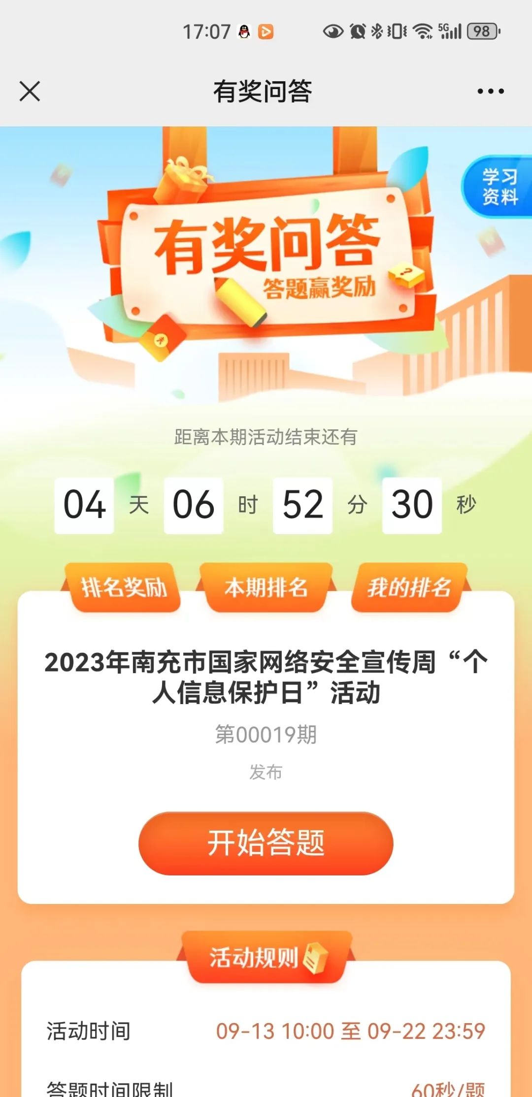 在网络安全周期间,南充市总工会、市妇联联合开展了“网络安全知识”线上有奖问答活动,通过竞答的方式为广大职工及妇女群众科普网络安全知识,致力营造清朗网络空间。