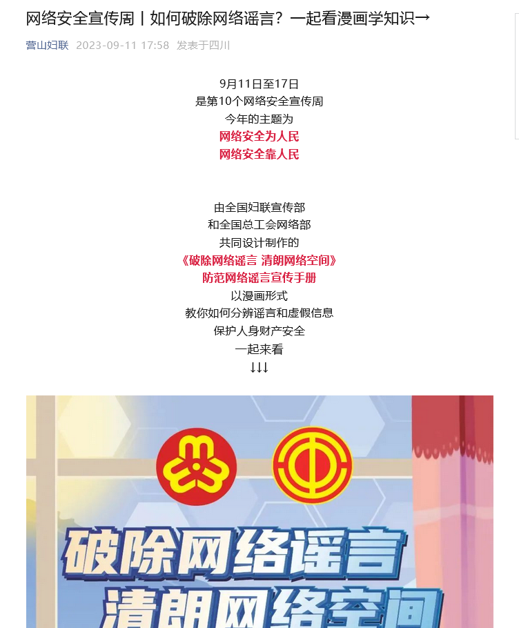 2023年国家网络安全宣传周,四川南充市各级妇联在行动!