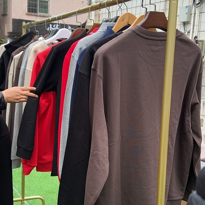 服饰摊位更是紧紧吸引了众人的目光。一个个架子上,摆满了外套、西服、旗袍、卫衣、围巾、童装等。
