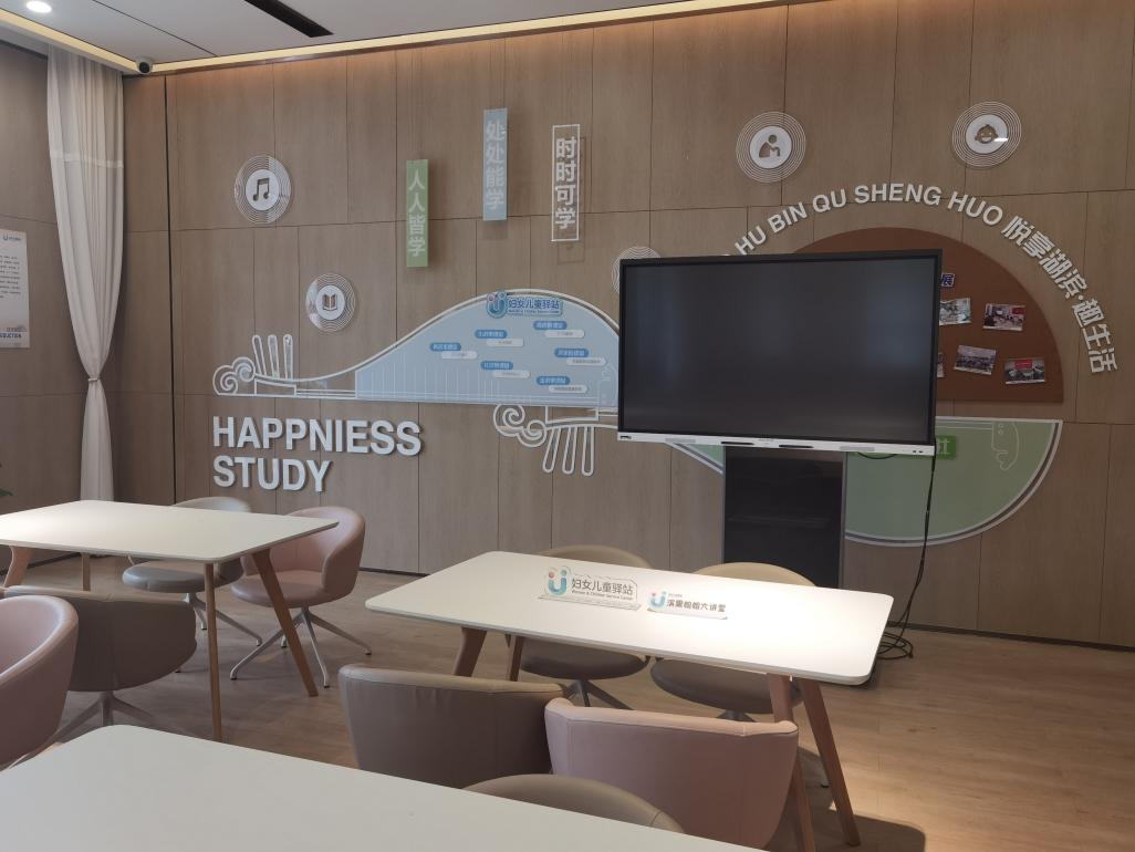 该驿站与社区党群服务中心、新时代文明实践站共享阵地,内设滨果姐姐大讲堂、滨果姐姐云上课堂、滨果姐姐调解工作室、滨果姐姐共富工坊等功能区块,以满足妇女儿童需求为导向,打造“友好·家”“时尚·家”“创享·家”“数智·家”“善育·家”等九大“滨果·家”联盟,构筑湖滨社区妇女儿童的“温暖之家”。滨果家庭教育个性化服务于2022年启动,通过家庭教育理念传播、家庭教育指导帮助父母树立正确的家庭教育观念,已推出家庭教育直播公开课20期,参与家长5000余人次。