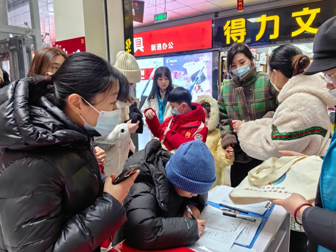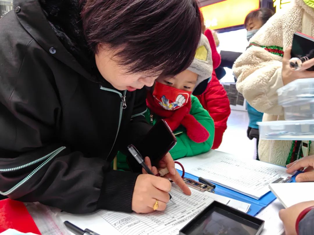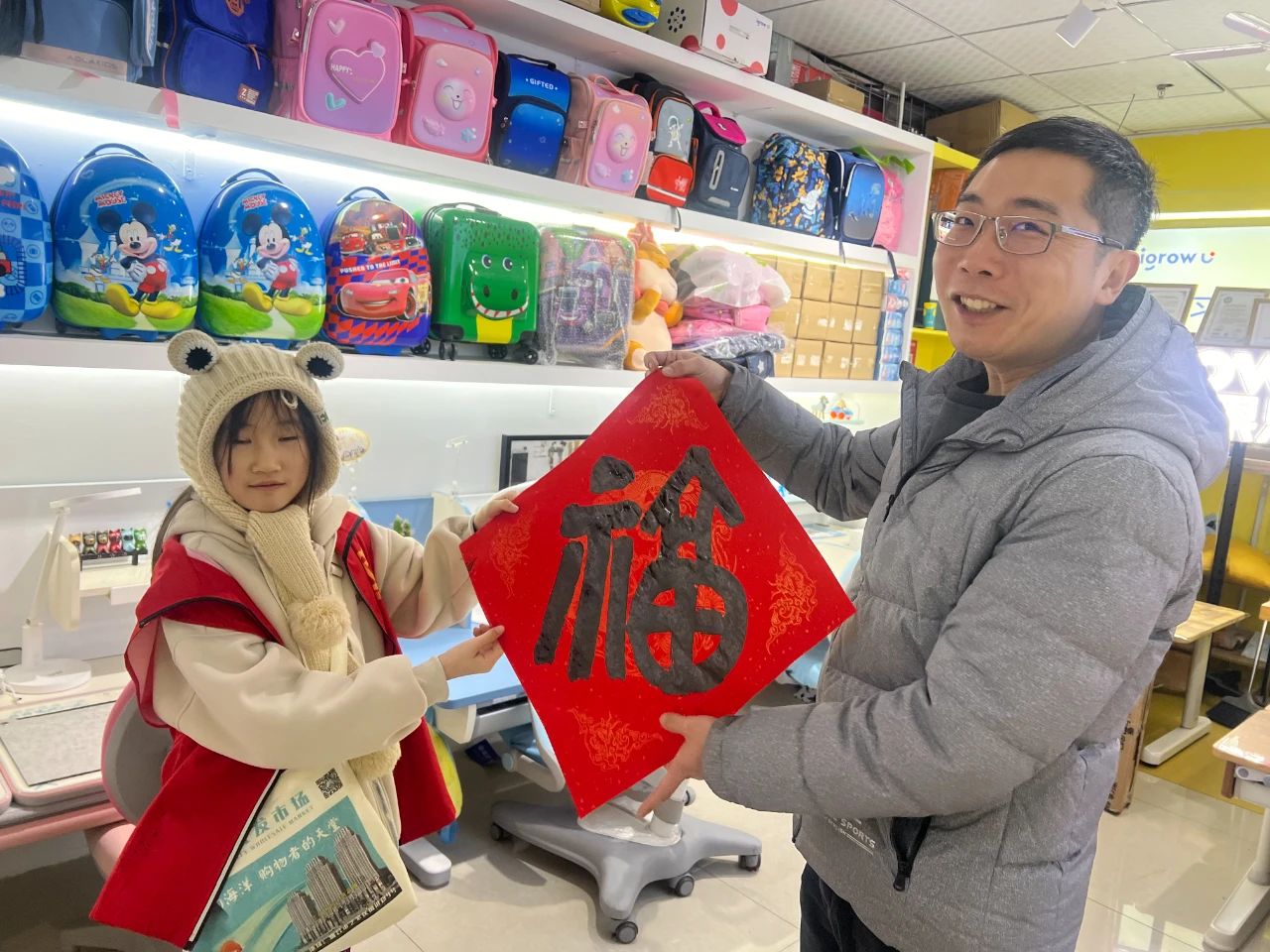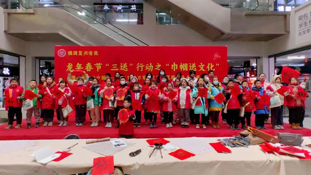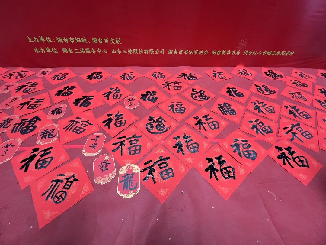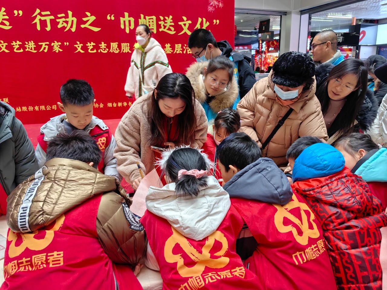 立春时节,烟台三站小商品市场里翰墨飘香、年味十足。龙年春节烟台妇联“三送”行动之“巾帼送文化”暨“我们的中国梦——文艺进万家”文艺志愿服务队走基层活动在这里举行。 活动由市妇联、市文联主办,三站服务中心、三站股份有限公司、烟台市书法家协会、烟台新华书店、快乐红心巾帼志愿阳光站承办。女书法家、绘本阅读指导师与100余名小小志愿者和家长共同学习春节习俗,并进行写“福”字、向三站商户赠送“福”字活动。 “南宋时期的《梦粱录》里就有‘贴春牌’的记载,也就是说,春节贴福字的习俗,到现在至少有750年了。”烟台新华书店绘本阅读指导师“桐桐姐姐”声情并茂地为孩子们讲解春节由来和习俗。 “孩子们,刚刚我们讲了‘年兽’的故事,咱们身上就有一样‘年兽’非常害怕的东西,是什么呢?” “我知道!”“是红马甲!””我穿着呢!“ 孩子们争先恐后举手抢答、积极互动,在寓教于乐中把优秀传统文化牢记在心。 女书法家教孩子们写福字,从上到下、从左到右依次为省书法家协会会员、市书法家协会会员刘惠芬,中国书法家协会会员、市书法家协会副主席宫庆全,省青年书法家协会会员、市书法家协会会员柳沣圃,烟台印社理事、市书协会员、市老年大学书法教师姜芳芳,中国硬笔书法协会会员、市书法家协会会员姜婧婧 接下来的写福字环节,5位女书法家挥毫泼墨,或端稳厚重、或飘逸灵动,如行云流水,百余张各种书体的福字写就。 “笔要立起来,不要着急,慢慢来。”在女书法家们手把手的指导下,小小志愿者聚精会神、运笔着墨,一个个稚嫩的福字,是孩子们对春暖花开、福暖万家的纯真祈愿。 为了激发孩子们对书法的兴趣,女书法家们将书法与漫画结合,专门书写了一系列卡通福字、龙字,受到热烈欢迎。“除了福字,我们还写了读书、立志、奋进等红色福卡,可以悬挂在巾帼志愿阳光站,让孩子们时时感受到书法之美,增强文化自信。”中国书法家协会会员、烟台市书法家协会副主席宫庆全表示。 “阿姨您好!这是书法家写的福字,祝您新春快乐!”“叔叔,福字送给您,给您拜早年!”小小志愿者火红的身影在三站小商品市场穿梭,把一个个刚写好的福字送到商户手中。一声声纯真的祝福,一句句真挚的感谢,使热闹的“年货大集”增添了喜悦和温暖。 “好多来采购的市民受到感染,带着孩子参与进来,我们更有干劲了。”快乐红心巾帼志愿阳光站负责人刘清表示,将进一步响应各级妇联号召,发挥好巾帼志愿力量,发挥阳光站建在商圈的优势,打造更多寓教于乐的项目,带动更多孩子和家长在“沉浸式”体验中让“赠人玫瑰 手有余香”的理念成为家风,让社会主义核心价值观随家风代代相传。