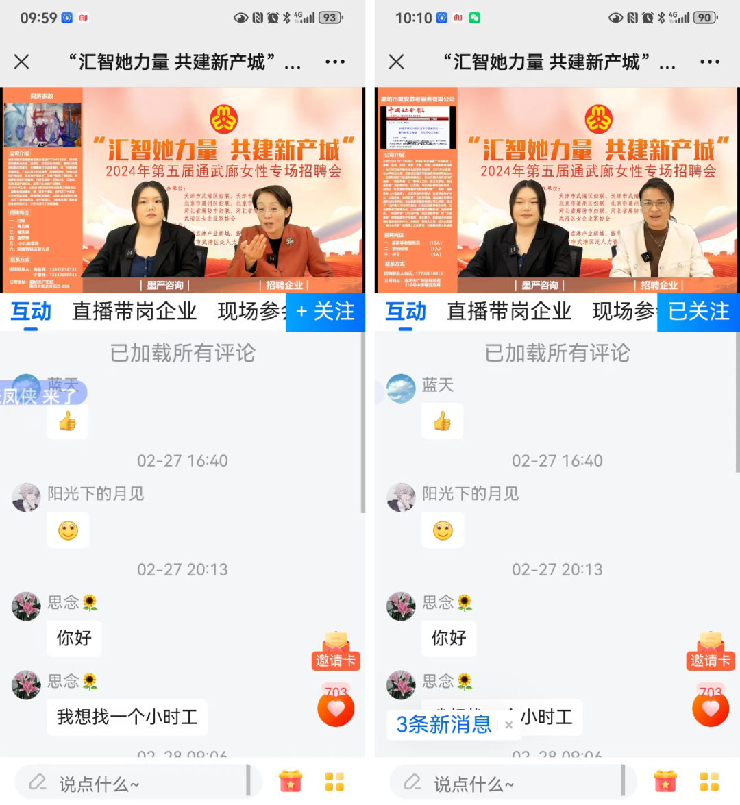 在京津冀协同发展重大国家战略实施10周年之际,2月28日,武清区、通州区、廊坊市三地妇联迅即召开通武廊妇女协同发展联席会议,认真贯彻落实京津冀党政主要领导联合调研要求,进一步推动通武廊妇女领域合作向更深层次、更广领域拓展,在助力京津冀协同发展上善作善成、见行见效。通武廊三地妇联相关负责同志出席。 《2023年推进通武廊妇女协同发展合作书》签订以来,通武廊三地妇联持续加强联系、联动、联手合作,在妇女协同创新、创业就业、乡村振兴、家庭家教家风建设等重点领域取得了突出的成效。2024年是京津冀协同发展重大国家战略实施10周年,是实施“十四五”规划、建设“京津明珠 幸福武清”的关键一年。立足十周年新起点,武清区妇联深入学习宣传贯彻习近平总书记视察天津重要讲话精神,践行“四个善作善成”重要要求,抢抓机遇、主动而为,积极对接通州区、廊坊市妇联,在深化区域协作上找抓手、求突破,推动通武廊妇女领域协同发展不断迈上新台阶。 座谈会上,通武廊三地妇联共同学习了习近平总书记关于深入推进京津冀协同发展的重要讲话和重要指示批示精神,总结了过去一年妇女协同发展经验成果,围绕进一步加强企业家交流交往、女性科技创新和人才创新、深化妇联组织改革、巾帼助力农文商旅深度融合等方面工作交流了思路举措、进行了深入谋划探讨,共同明确了深化合作的重点领域和发展目标。一是深化交流共促,举办京津冀“闪耀巾帼风 聚力启新城”巾帼助力高质量发展推动大会、女性专场招聘会、巾帼会客厅创业故事荟,共同助力新质生产力加快发展。二是深化资源共享,发挥通武廊“巾帼共富联盟”平台优势,健全女性人才教育培训、技能竞赛、交流互学机制,推动三地妇女实现就业创业。三是深化联动共建,打造能力提升课堂,开展三地妇联干部联培联训,建强高素质专业化妇联干部队伍。四是深化文化共融,持续开展通武廊“三八”服务季活动,大力宣传推介特色农副产品、非遗文化、传统产业和新商圈打卡地等优质妇女儿童服务资源,推动农文商旅融合发展。 下一步,三地妇联将紧紧围绕京津冀协同发展大局,持续深化妇女领域交流合作,团结引领三地妇女勇担使命、开拓创新,在加快推动“通武廊”一体化高质量发展上勇争先、善作为,以实际行动为京津冀协同发展十周年献礼。 会后,出席同志共同前往“汇智她力量 共建新产城”第五届通武廊女性专场招聘会、区人才综合服务街区、区人力资源服务产业园点位调研考察,深入了解“通武廊”妇女领域人力资源产业发展情况。 廊坊同济家政、聚爱养老等7家企业参与“线上+线下”招聘活动,2位家政人走进直播间参加“直播带岗”,与京津两地姐妹互动,介绍廊坊企业宣传廊坊文化,广纳两地人才,充实家政队伍,为京津冀协同发展助力。
