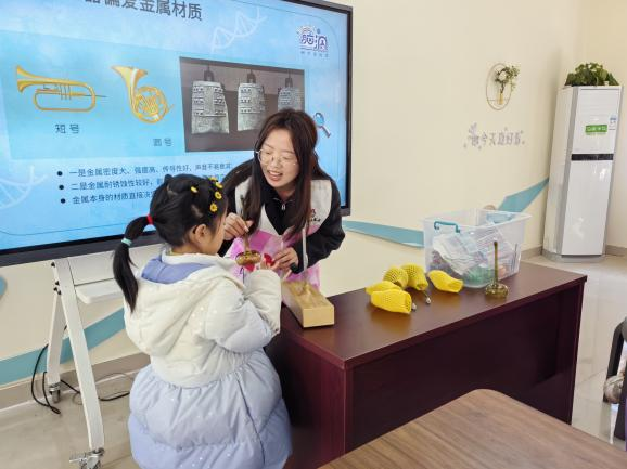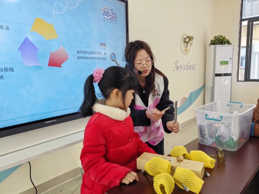 比如我们用橡皮锤敲打音叉,来听声音的频率。还有吹琉璃咯嘣,使用节拍器来听声音的频率等实验。在实验过程中,大家欢声笑语,都表示原来耳朵听见的声音,居然蕴藏着这么多奥秘!