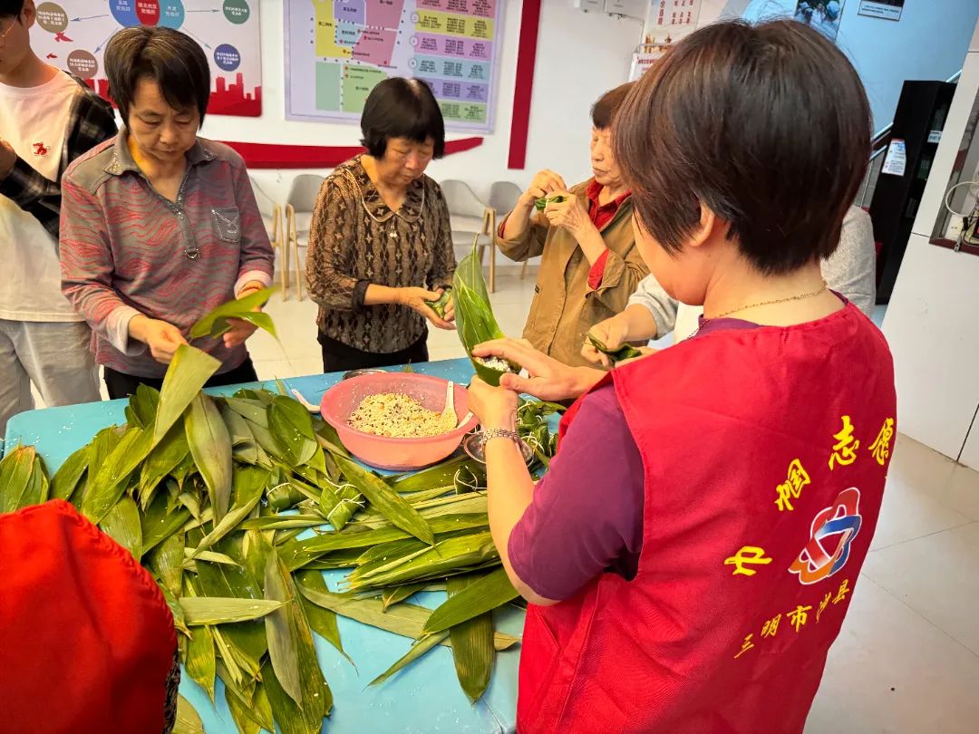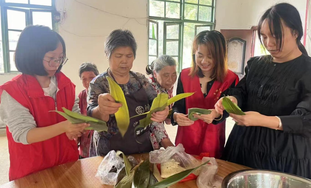 凤岗街道 6月3日,区妇联联合府前社区组织居民在近邻之家开展“邻里手牵手 端午情意浓”端午节主题活动。巾帼志愿者和社区居民围在一起包粽子,一片片清香的粽叶、一粒粒晶莹的糯米,在一双双巧手下转眼就变成了一个个诱人的粽子。活动现场弥漫着棕叶香,欢声笑语不断。活动结束后,巾帼志愿者提上一袋袋装满心意的粽子,到社区困难老人家中送上端午祝福。 城北社区 虬江街道 近日,生态新城社区组织巾帼志愿者上门慰问辖区内百岁老人,耐心地询问他们的生活情况和身体状况,为老人们送去节日的祝福及慰问品,用实际行动传递关爱和温暖。 青州镇 近日,青州镇妇联组织巾帼志愿者开展“我们的节日•端午”主题活动。活动现场,糯米、花生、红豆、粽叶等食材摆满桌,巾帼志愿者和参加活动的老人们齐齐动手,在一片欢声笑语中,包出又大又漂亮的粽子。同时,巾帼志愿者还与老人们一起完成端午主题绘画,为他们送上节日的祝福与慰问,让他们真切感受到党和政府的温暖关怀。 富口镇 近日,富口镇妇联联合姜后村妇联开展“六一加端午,大手牵小手”的主题活动。活动现场,新鲜的粽叶、糯米和各种馅料有序摆放在桌面上,巾帼志愿者带领着小朋友们围在桌子旁,教孩子们包粽子,老少欢聚一堂,共同感受端午佳节传统文化的魅力。 大洛镇 6月5日上午,大洛镇妇联联合大洛中心幼儿园开展“寻味端午 浸润童心”端午节活动,巾帼志愿者和小朋友们一起了解端午的习俗,一起包粽子,让小朋友们沉浸在节日的快乐氛围中。 南阳乡 在端午节来临之际,南阳乡妇联组织开展“浓情端午,粽香安康”端午节主题活动。巾帼志愿者来到乡养老服务中心,跟老人们一起话家常、包粽子,为他们送去节日的祝福。 南霞乡 6月5日上午,南霞乡妇联组织开展“我们的节日·端午”主题文明实践活动。在霞村新时代文明实践站,巾帼志愿者和村民们围在长桌前忙碌着,现场处处洋溢着幸福美好的节日气氛,增强了村民们的归属感和幸福感。