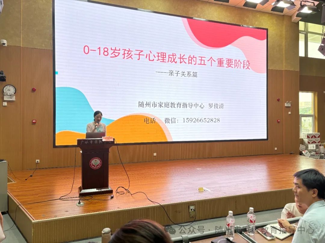 本次培训第一篇章由随州市中小学教师(校长)继续教育中心沈题老师主讲《育人者的觉醒》;第二篇章由随州市家庭教育指导中心罗俊清老师主讲《0-18岁孩子心理成长的五个重要阶段》。两位老师用深入浅出的语言,针对家庭教育指导中的技巧与方法展开,根据实际家庭教育中的困惑和问题,围绕影响孩子成长、发展的因素,为大家提供有质量的陪伴孩子的方法、父母好好说话的技巧、教育方式的教育理念等内容进行了讲解,向大家传递了如何改变对话思维,找到家庭健康幸福成长的新途径。