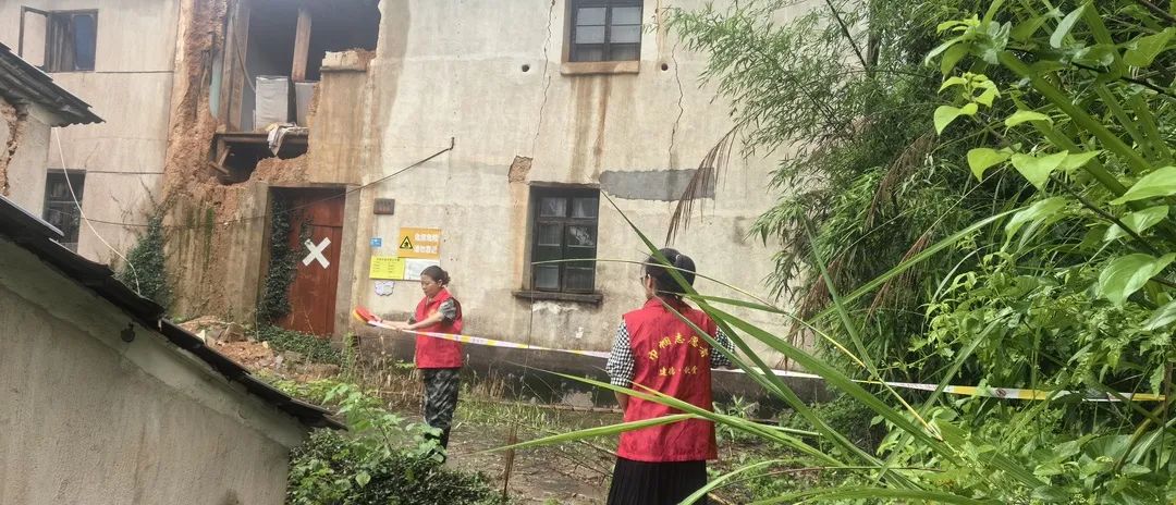 ▲钦堂乡巾帼志愿者在危房处拉起警戒线