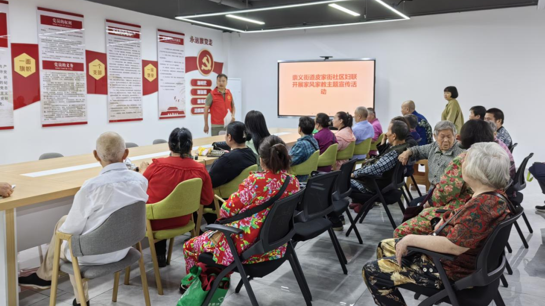 崇义街道皮家街社区妇联在社区活动室开展家风家教主题宣传活动。