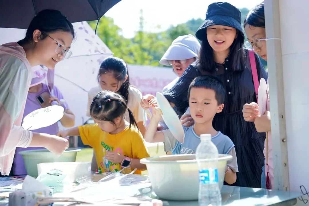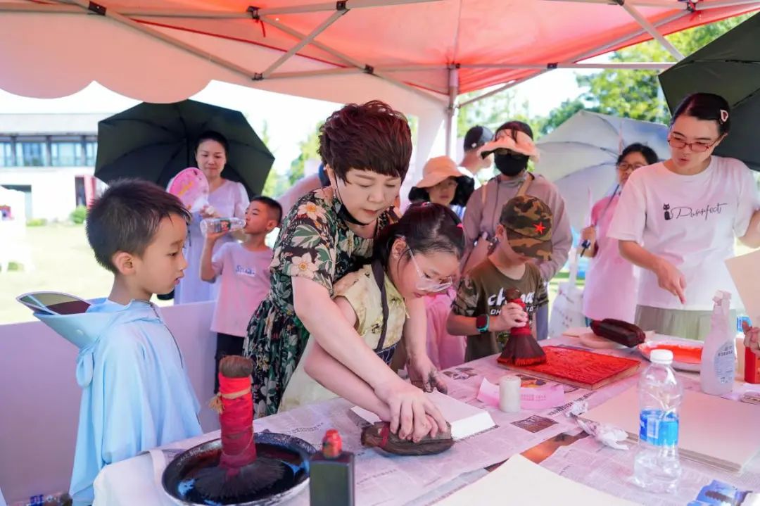 活动现场,“心向党·筑未来”家国情怀育童心、“树品德·筑未来”家风家教暖童心、“伴成长·筑未来”非遗传承润童心、“护青绿·筑未来”生态文明入童心四大活动板块热闹非凡。在“爱心妈妈”和家长的陪伴下,孩子们尽情体验建本拓印、书香漂流、漂漆制扇、巧手点茶等形式多样、鲜活新颖的活动,在实践体验中培养兴趣爱好、增长本领才干,收获难忘而充实的暑期美好记忆。