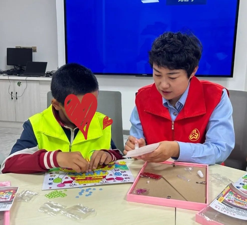 社区巾帼志愿者为参与活动的“金妈妈”和“金宝宝”介绍了国庆节的意义和本次活动的流程。随后,“金妈妈”和“金宝宝”携手共同制作了国庆节主题手工粘贴画。活动过程中,“金妈妈”与结对“金宝宝”亲切交流,关心他们的生活和学习情况,给予温暖的关怀和鼓励,进一步增进了彼此间的情感交流,让孩子们真切感受到妈妈般的关爱和社会大家庭的温暖。