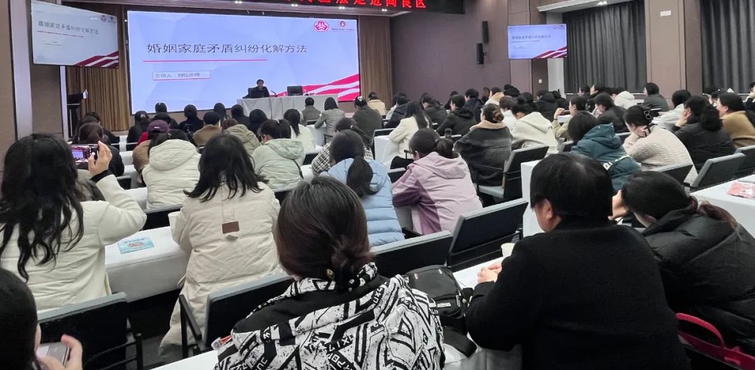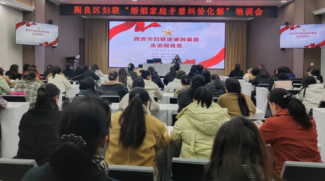 为进一步提升广大妇女群众尊法学法守法用法的自觉性和主动性,坚持和发展新时代“枫桥经验”,推进信访工作预防法治化,更好地解决本地区婚姻家庭矛盾纠纷化解工作,11月20日,陕西省西安市阎良区妇联在区政府二楼西会议室举办“婚姻家庭矛盾纠纷化解”专题培训会。各街道妇联分管领导、妇联干部、各村(社区)妇联主席、各街道社区(村)管理和网格化服务中心业务干部、婚调委调解员100余人参加培训。