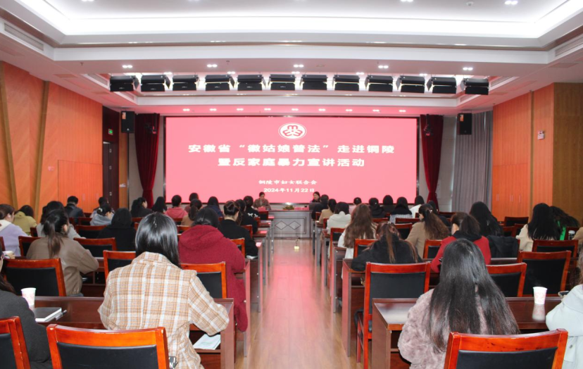 为全面贯彻党的二十大精神和党的二十届三中全会精神,深入学习习近平总书记考察安徽重要讲话精神,不断提高妇女群众法治素养和参与基层依法治理水平,有效预防和制止家庭暴力,建立平等、和睦、文明的家庭关系,11月22日上午,由安徽省妇联组织、铜陵市妇联主办的安徽省“徽姑娘普法”走进铜陵暨反家庭暴力宣讲活动在铜陵举办。市妇联党组成员、市政府妇儿工委办主任钱玮芳主持会议,市、县(区)妇联分管负责同志、权益部工作人员,基层妇联主席、农村妇女群众、妇女“法律明白人”代表等共计80余人参加培训。 本次培训会特邀安徽省“徽姑娘普法”宣讲团专家、安徽永承律师事务所主任、安徽省婚姻家庭法学研究会副会长、安徽省律协婚姻家庭法律专业委员会主任曹冬梅现场授课。曹律师围绕“反家暴法的解读与适用”,现场解读了《中华人民共和国反家庭暴力法》,她紧扣法律条文,结合真实案例,详细介绍了家庭暴力的内涵、遭遇家庭暴力应当如何救济等内容,提升了基层妇联干部和妇女群众的法治素养。 下一步,市妇联将持续关注妇女儿童需求,积极联动有关部门,结合“巾帼暖人心”深化维护妇女权益专项活动和“巾帼普法乡村行”等活动,大力宣传《妇女权益保障法》《反家庭暴力法》等法律法规,为女性提供更多学习法律知识的机会,提升妇女群众的法治意识和依法维权能力,当好妇女群众贴心的“娘家人”。