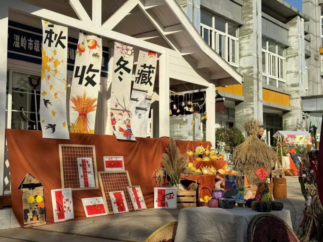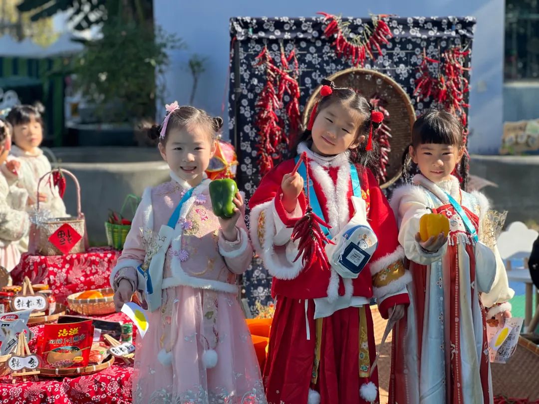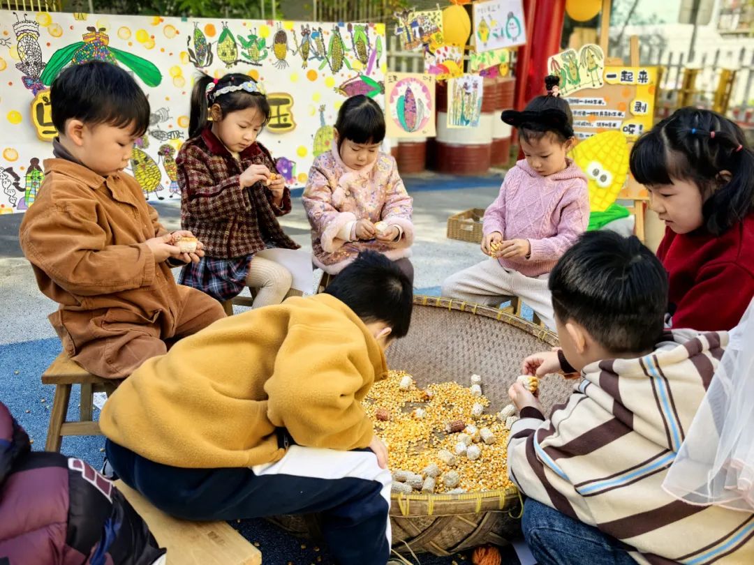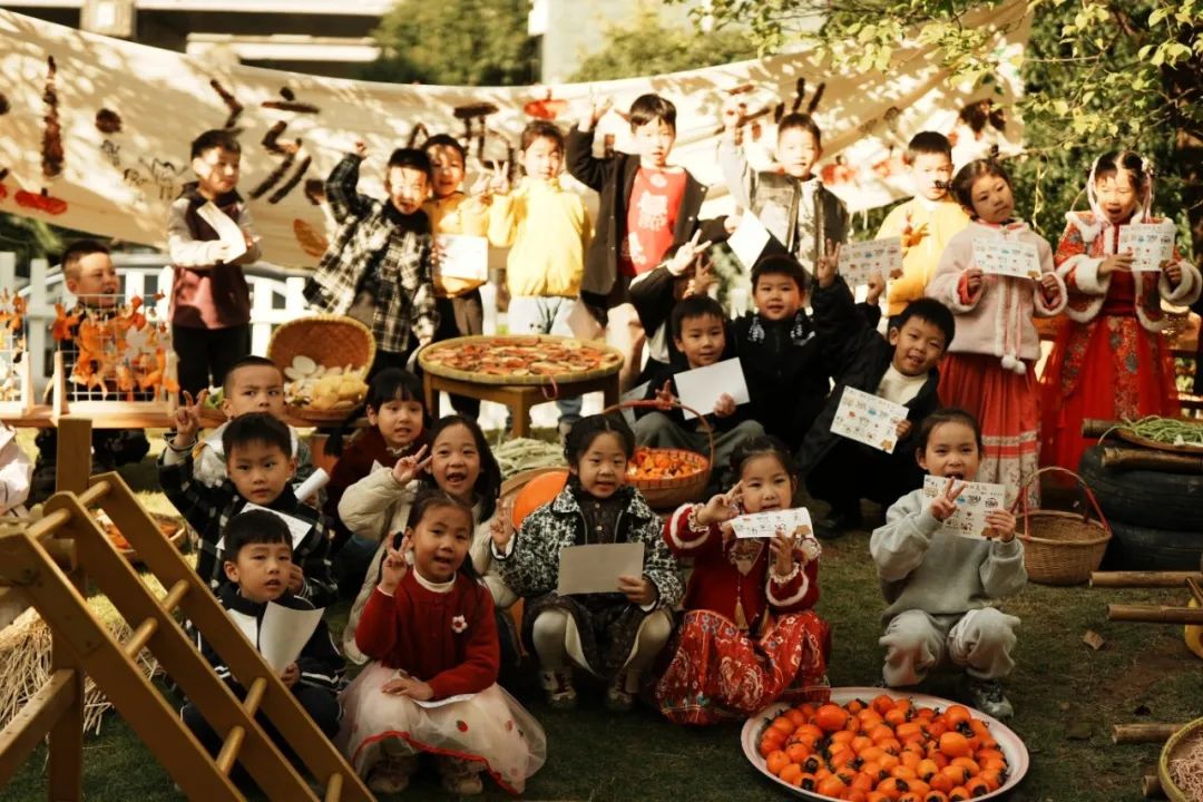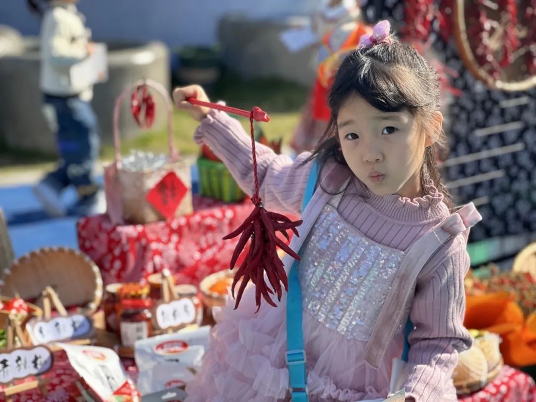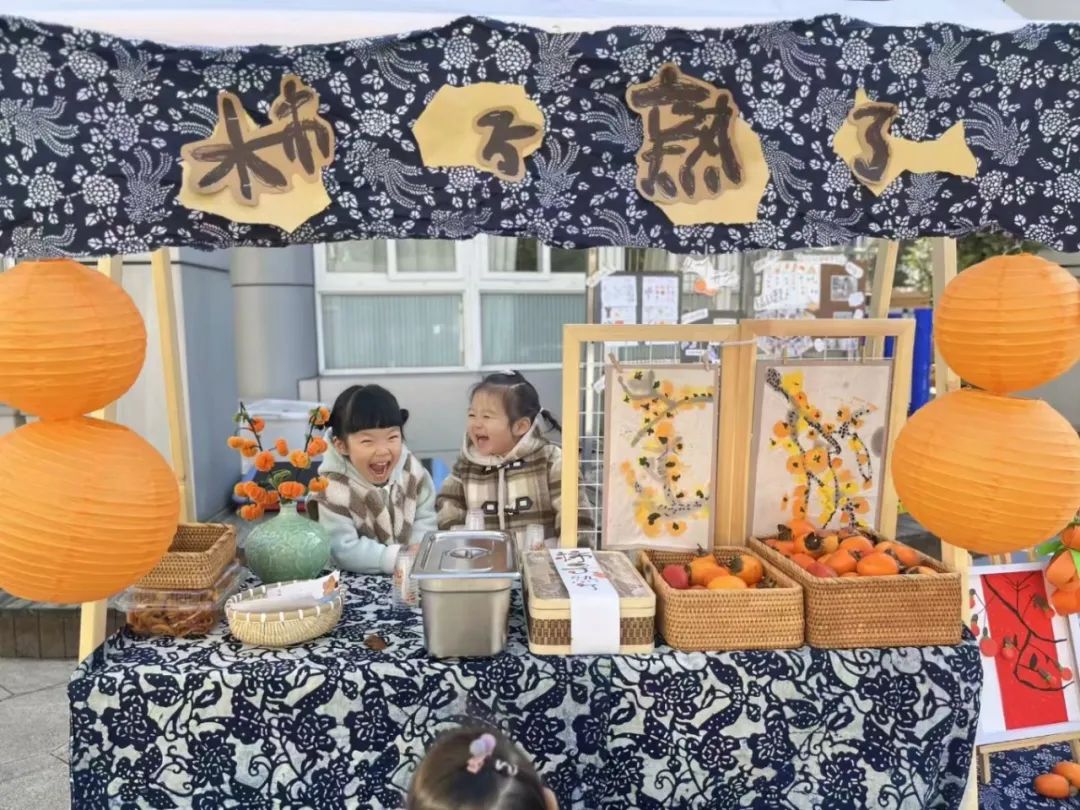 近日,一场以“遇见自然,绽放真我”为主题的乐享丰收成果系列活动,在台州市儿童友好示范单元——温岭市级机关幼儿园生动上演。孩子们通过体验秋收的意义,深切感悟冬日的美好与快乐。 什么是冬藏?到底要藏些什么?“就是把秋收的果实放到一起。”“就是把蔬果更好地进行利用,变成另一种美味的食物。”孩子们在老师的启发下各抒己见,表达着真诚的想法。 能够形成当天秋收成果的圆满展示,得益于孩子们前期以兴趣为主导,以班级为单元,聚焦秋天的某一景物展开的为期一个月的项目式课程。 走进孩子们策划布置的冬藏现场,南瓜、玉米、柿子、辣椒……一串串、一盆盆、一堆堆,伴随着丰富多彩的活动,孩子们将探寻来的秋天果实,色彩斑澜地呈现在大家眼前。 番薯的藤条变成一条条美丽的项链,戴在头上耳朵上别提多好看了;鲜嫩的白菜,在孩子们的一双双巧手下,通过阳光的温润照射变成细细长长的菜干;多汁可口的橘子也大有用处,果肉打果汁,果皮晒干制成橘皮水,这么多储存秋物的方法被孩子们运用得灵活自如,一个个俨然成为冬藏小专家了。