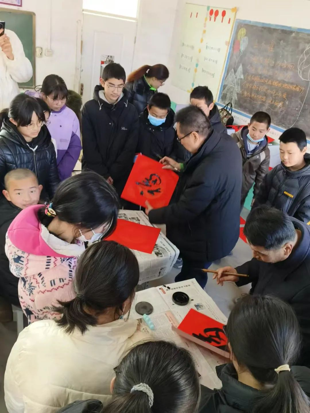 活动现场,河北省书画艺术研究院的“爱心爸妈”们与孩子一同开展了年俗文化体验活动,以知年俗、寻年趣、品年味、享年欢为主题,为孩子讲授生活中的艺术、年俗里的文化,共同写“福”字、写春联,“爱心爸妈”们还向孩子赠送了一批优秀书画作品,让孩子们在体验和学习中感悟中华文化的深厚底蕴。孩子们认真倾听年俗文化知识讲解,积极交流互动,在“爱心爸妈”的耐心指导下,纷纷拿起毛笔尝试书法创作。孩子们表示,这是他们第一次拿起毛笔,内心充满新奇和喜悦,同时深深感受到了妇联组织送来的暖心关爱。