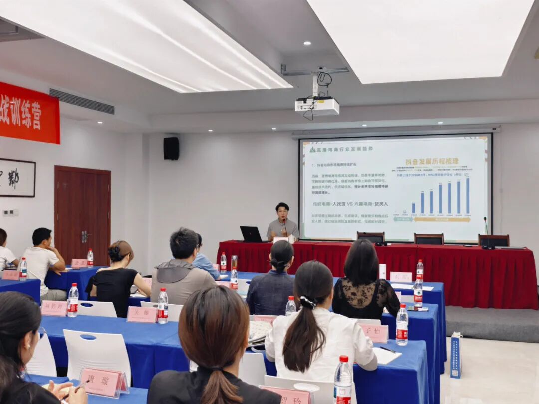 培训聚焦电商直播核心技能,特邀行业资深专家、“sevenchic官方旗舰店”主播王天义担任主讲,围绕直播电商发展趋势、直播间搭建、流量提升、控场技巧及短视频制作等内容,通过“理论+实操”相结合的方式,进行系统培训,帮助学员快速掌握直播全流程。针对学员提出各种实际问题,王老师悉心讲解、逐一回应,手把手指导学员优化直播话术脚本、短视频文案等,从专业角度给出调整意见。