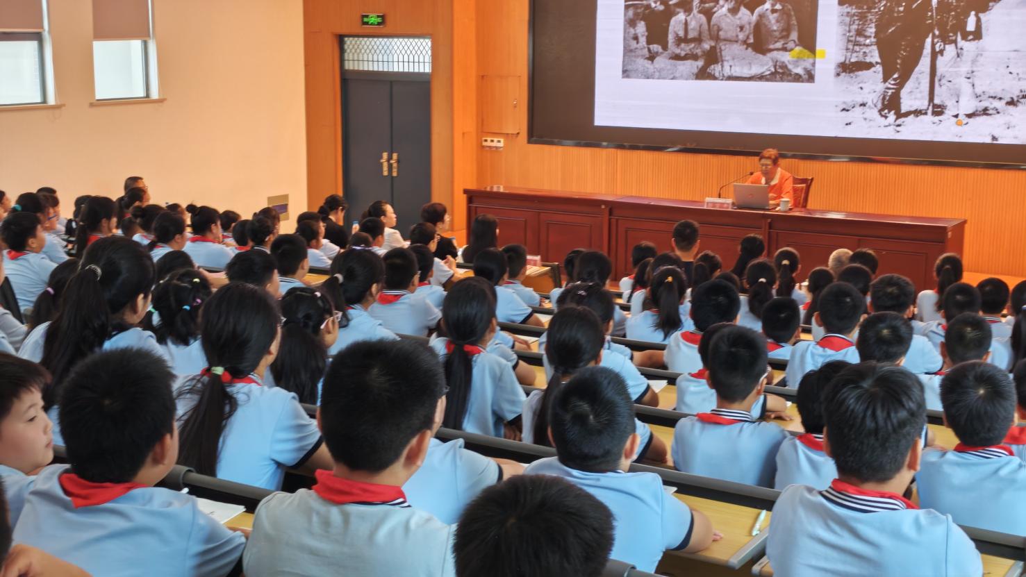 为弘扬科学家精神,激发青少年科学探索热情,9月12 日下午,江苏省苏州市相城区黄埭镇妇联携手东桥中心小学 特邀中国科学家精神宣讲团成员、李四光纪念馆高级顾问、 著名地质学家李四光先生的外孙女邹宗平女士,在学校报告 厅开展了一场题为《石迹耿千秋——李四光的故事》的科学 讲座。活动现场座无虚席,240名五年级学生和社团成员 齐聚一堂,聆听这场科学盛宴。