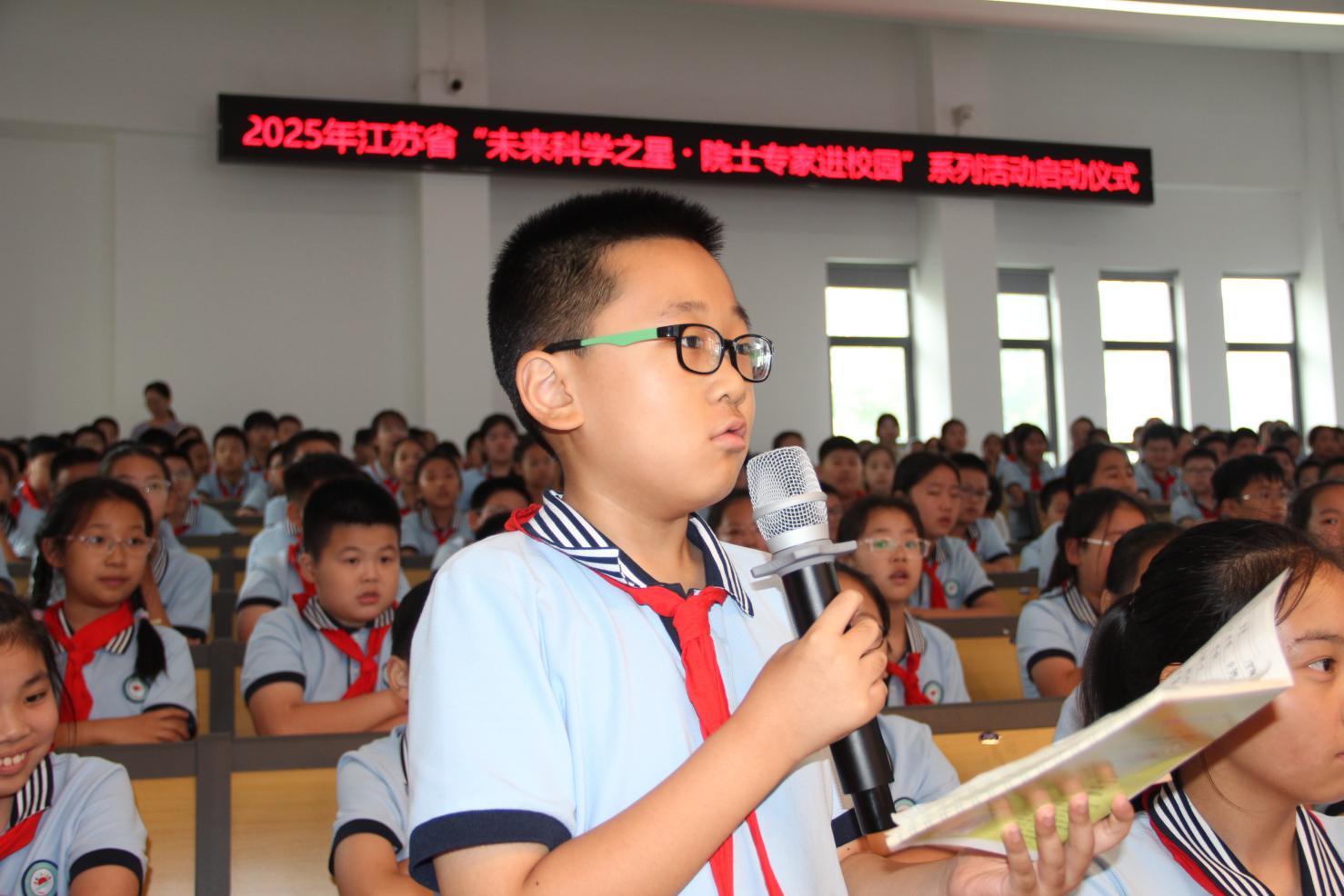 邹宗平女士耐心细致地回答每一个问题,她用亲切幽 默的语言化解了同学们的好奇与困惑,用专业权威的解答满 足了同学们的求知欲望。当被问到“如何坚持科学探索”时, 她笑着说:“就像你们做数学题一样,遇到难题不放弃,多 观察、多思考,科学探索的乐趣就藏在坚持里。在互动中, 她不仅传授了科学知识,更传递了科学研究的乐趣和价值。 现场气氛热烈,掌声不断,科学的种子在问答间悄然播撒在 孩子们的心田。