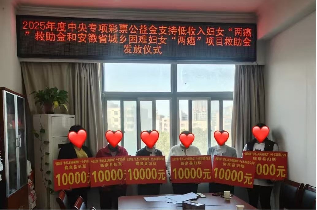 “感谢妇联‘娘家人’的关心,不仅拿到了救助金,还学到了健康知识,生活更有底气了!”近日,安徽省阜阳市一名受助“两癌”妇女接过救助金时感动地说。2025年以来,阜阳市妇联聚焦困难“两癌”妇女急难愁盼,通过资金救助、健康科普、物资慰问等多项举措,全方位传递党和政府的温暖与关怀。