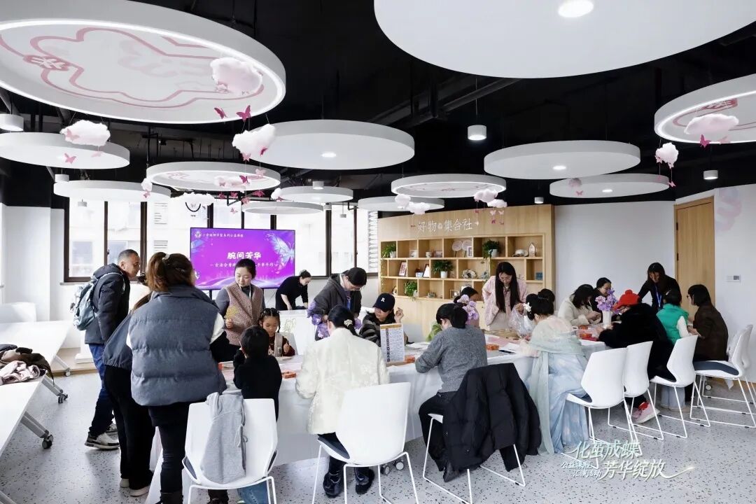 活动以“万物生花,巾帼芳华”春日游园会启幕。AI糖画机、AI女性创业项目等展示吸引众多参与者驻足,智能科技体验为活动注入新意。公益课程作品成果展同步亮相,女性创意手工与亲子共创作品相映成趣,展现学员们的成长与巧思。公益课程互动体验区更是人头攒动,非遗手作、春日糕点、创意手工等热门公益课程集中返场,姐妹们沉浸式参与,尽享趣味时光。