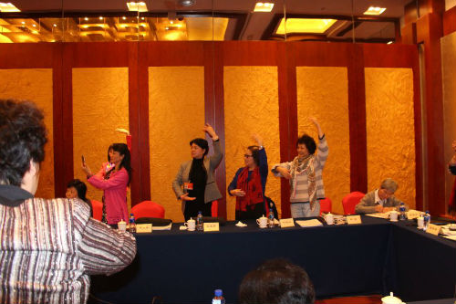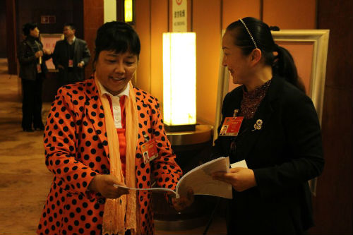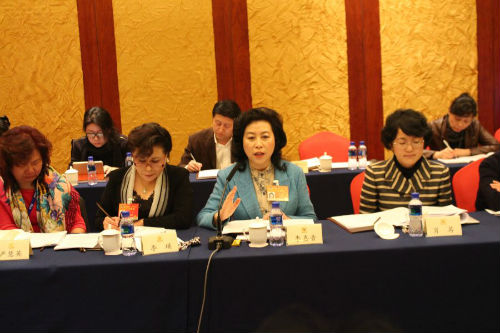 小组讨论召集人、全国妇联甄砚委员认真听取同组委员们的发言,做出积极回应。