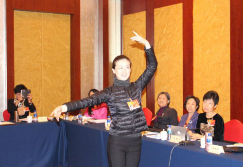 3月6日上午的会议结束后,国家一级演员、中央芭蕾舞团首席主演朱妍应同组委员的邀请,现场教授芭蕾基本动作。