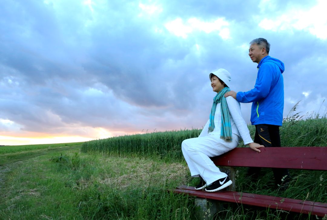 赤脚踏上一片青草地,敞开身体,向着晨光,深深地吸气,做一个瑜伽动作“太阳致敬式”,每一个舒展和呼吸,都连接了对太阳的真爱。蓝天在指尖上,绿地在脚掌下,然后合一……