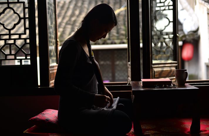 距上海一个多小时车程的西塘,也是我此行勾留的古镇。沿古街走入,潺潺河水把古镇分隔两旁,以数座拱桥连接。我边行边想选一处客店落脚安身,抬头见牌匾上绿漆字“陈家老宅”,心里喜欢。迈进门槛,时光的错落感扑面而来,并不猛烈,夹杂着所有逝去的往昔,淡淡地从脸庞上拂过。我缓缓地吸气,吸入古宅新鲜而古老的气息。这400年的老宅,用它沉静的场,把我包容……