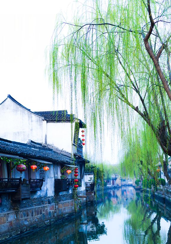 主人带我到房间,一人窄的木楼梯,每一脚踩上去的声响,是被风雨、阳光记载在台阶上的音符。淡青色的光线,照见雕花木床,垂落蚊帐,木桌椅依窗摆放,桌上只茶杯两盏,水壶一把,一切陈旧而简单,木地板踩上去吱吱轻响。走到窗边,拉开蓝底白花布窗帘,河水、小舟是我窗下的风景,换了身麻布青衫,踏出宅子,开始心灵的独走。漫步沿河长廊,望向回廊与老宅,望向鲜亮的草木,每一个擦肩而过的游人,我都敞开接收着他们轻盈的光芒。