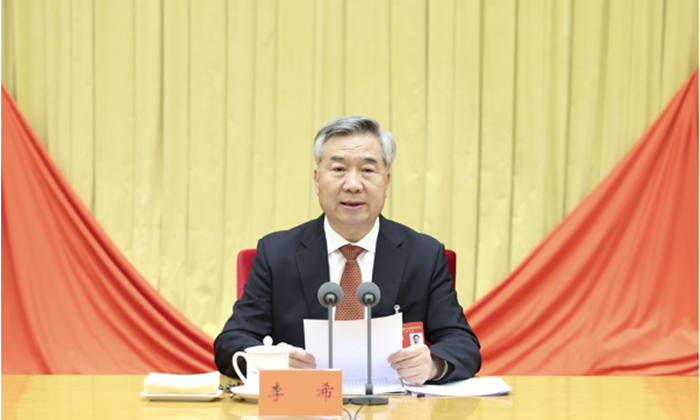 1月8日,中国共产党第二十届中央纪律检查委员会第三次全体会议在北京开幕。中共中央政治局常委、中央纪律检查委员会书记李希代表中央纪律检查委员会常务委员会作题为《深入学习贯彻习近平总书记关于党的自我革命的重要思想,纵深推进新征程纪检监察工作高质量发展》的工作报告。新华社记者 庞兴雷 摄